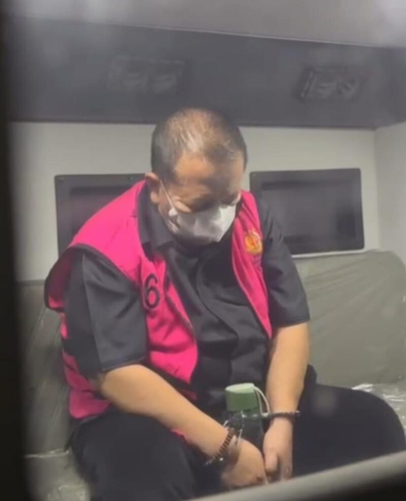 Usai pemeriksaan, Arinal terlihat keluar dari ruangan dengan mengenakan rompi tahanan berwarna merah muda. Ia juga telah menggunakan gelang penanda tahanan.