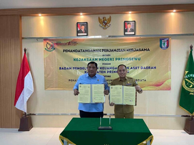 Lampung – Kejaksaan Negeri (Kejari) Pringsewu bersama Badan Pengelola Keuangan dan Aset Daerah (BPKAD) Kabupaten Pringsewu resmi menandatangani nota kesepahaman atau Memorandum of Understanding (MoU) di bidang Perdata dan Tata Usaha Negara.