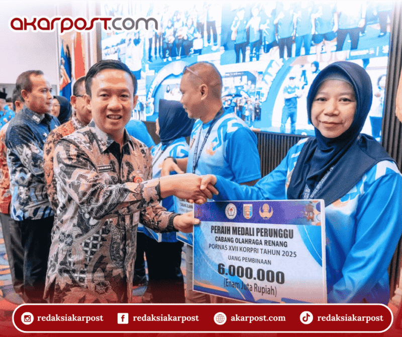 Bandarlampung – Pemerintah Provinsi Lampung menyerahkan tali asih, santunan, serta penghargaan kepada anggota KORPRI dan atlet ASN berprestasi dalam ajang Pekan Olahraga Nasional (PORNAS) XVII KORPRI 2025, di Balai Keratun, Kamis (02/01/2026).