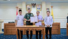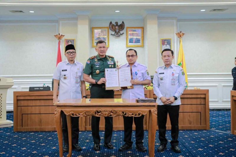 Penandatanganan dilakukan oleh Plt. Badan Pengelolaan Keuangan dan Aset Daerah (BPKAD) Provinsi Lampung, Nurul Fajri, bersama Kristomei Sianturi selaku Pangdam XXI/Radin Inten, serta Haryantana selaku Danrem 043/Garuda Hitam dan perwakilan unsur TNI-Polri lainnya.