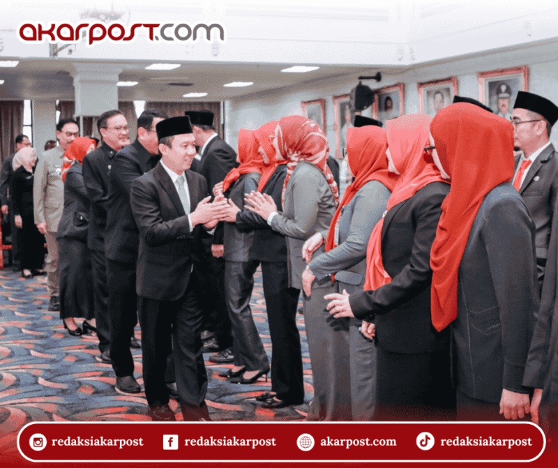 BANDARLAMPUNG – Sekretaris Daerah Provinsi Lampung Marindo Kurniawan melantik dan mengambil sumpah/janji jabatan Pejabat Administrator dan Pejabat Pengawas di lingkungan Pemerintah Provinsi Lampung di Balai Keratun, Komplek Dinas Kantor Gubernur, Bandarlampung, Rabu (21/1/2026).