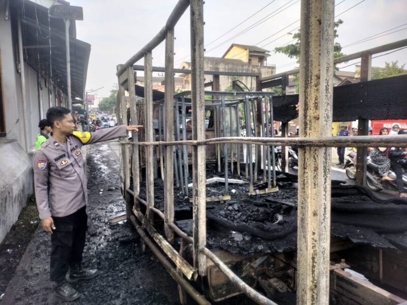 Unit Reskrim Polsek Pringsewu Kota bersama tim Inafis Sat Reskrim Polres Pringsewu kini melakukan olah TKP untuk memastikan penyebab kebakaran dan mengidentifikasi sopir yang kabur. (red)