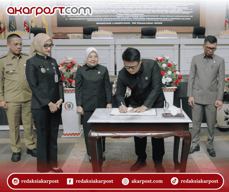 Apresiasi itu disampaikan Wagub Jihan saat Rapat Paripurna Penetapan Persetujuan atas enam Raperda Usul Inisiatif DPRD dan dua Raperda Prakarsa Pemerintah Provinsi Lampung di Ruang Sidang DPRD Provinsi Lampung, Senin (29/12/2025).